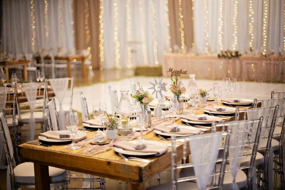 Centrepieces Geometric rose gold centrepieces Geometric square centrepieces Round hoola hoop centrepieces Driftwood Lace jars Crystal bedlamp shades White fairylight trees